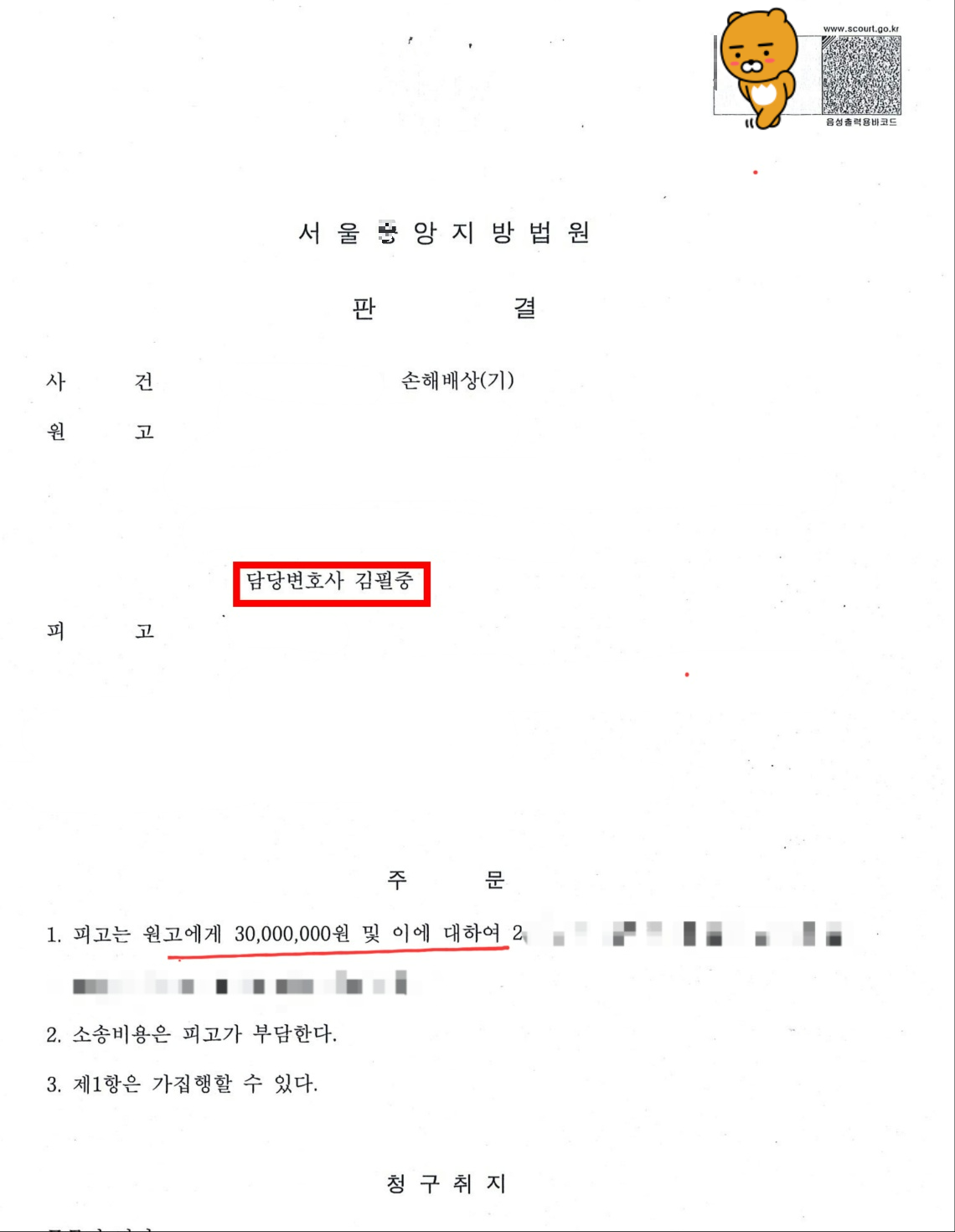 상간녀 위자료 청구소송 3,000만원 승소판결